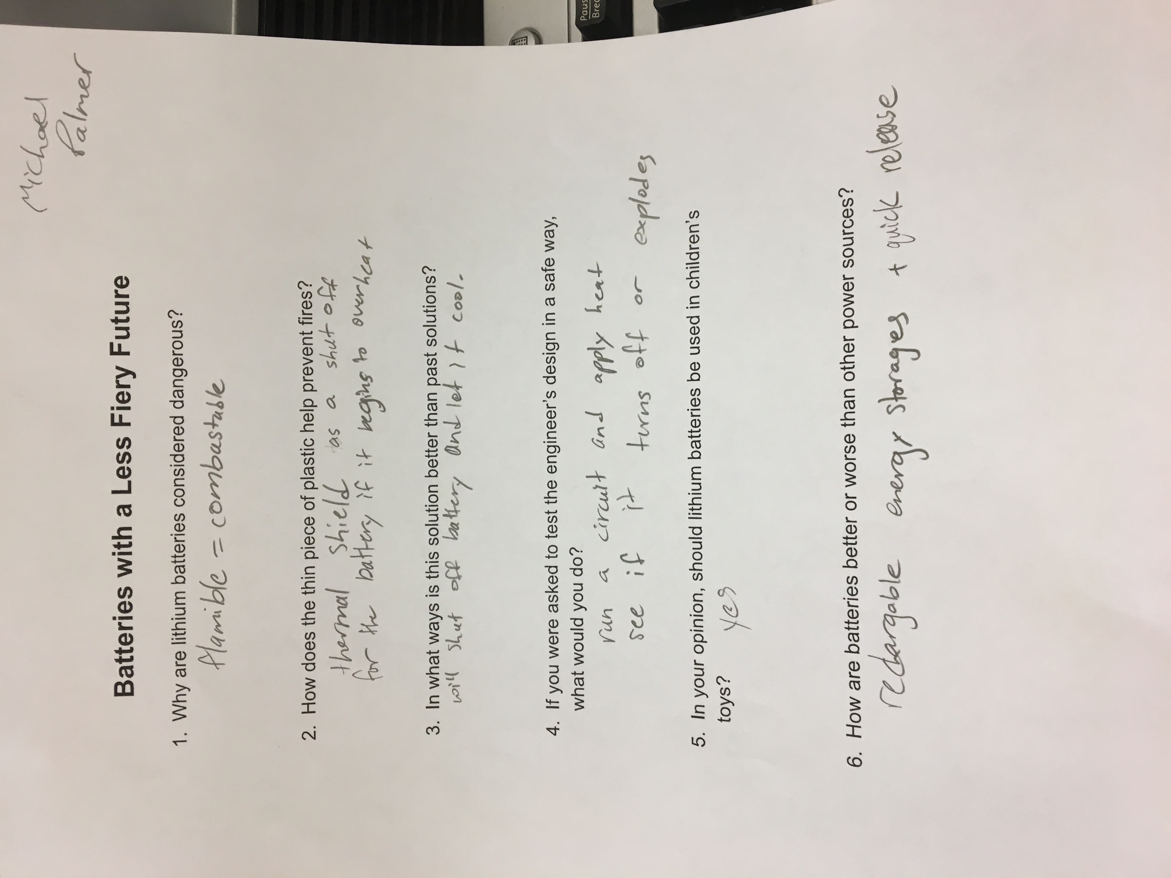 a) What was the audio about? (1-2 sentences):the audio was about how if you wrap a certain plastic around a battery it becomes insulated. The polymer can shut off the battery at any given moment if the battery reaches a certain temp.
