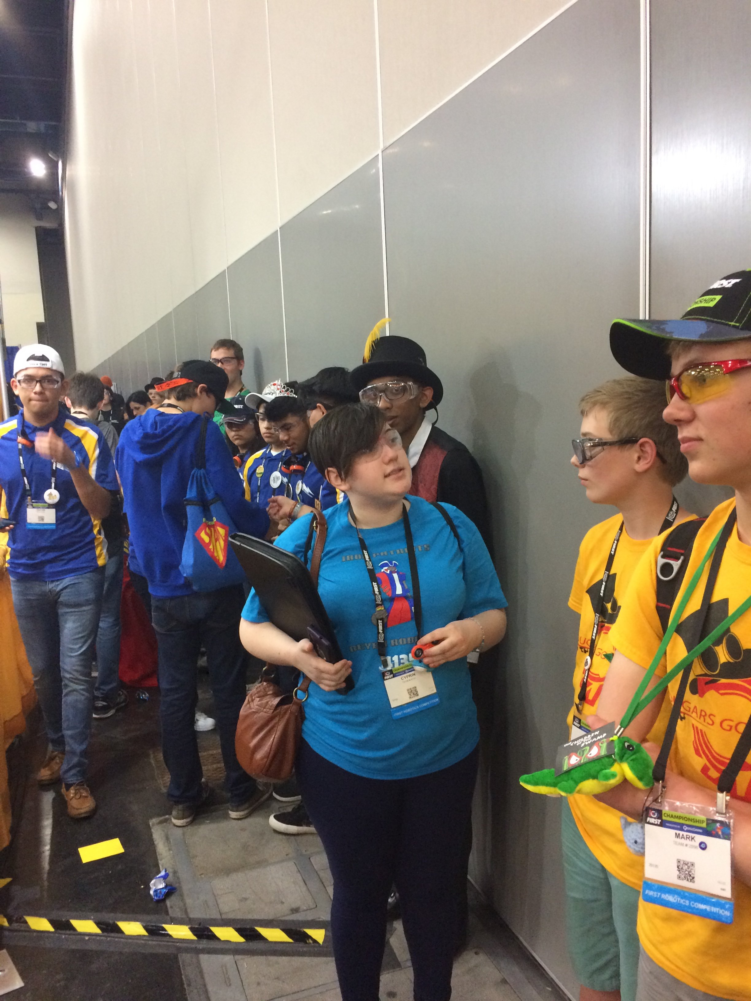 Today was teh last day of qualifying matches and it was an exciting day. we broke some robots and talked to 4 people from disney imagineering. i also delivered our handout gears to the cooler master booth and had some really good mac and cheese with pulled pork style chicken.