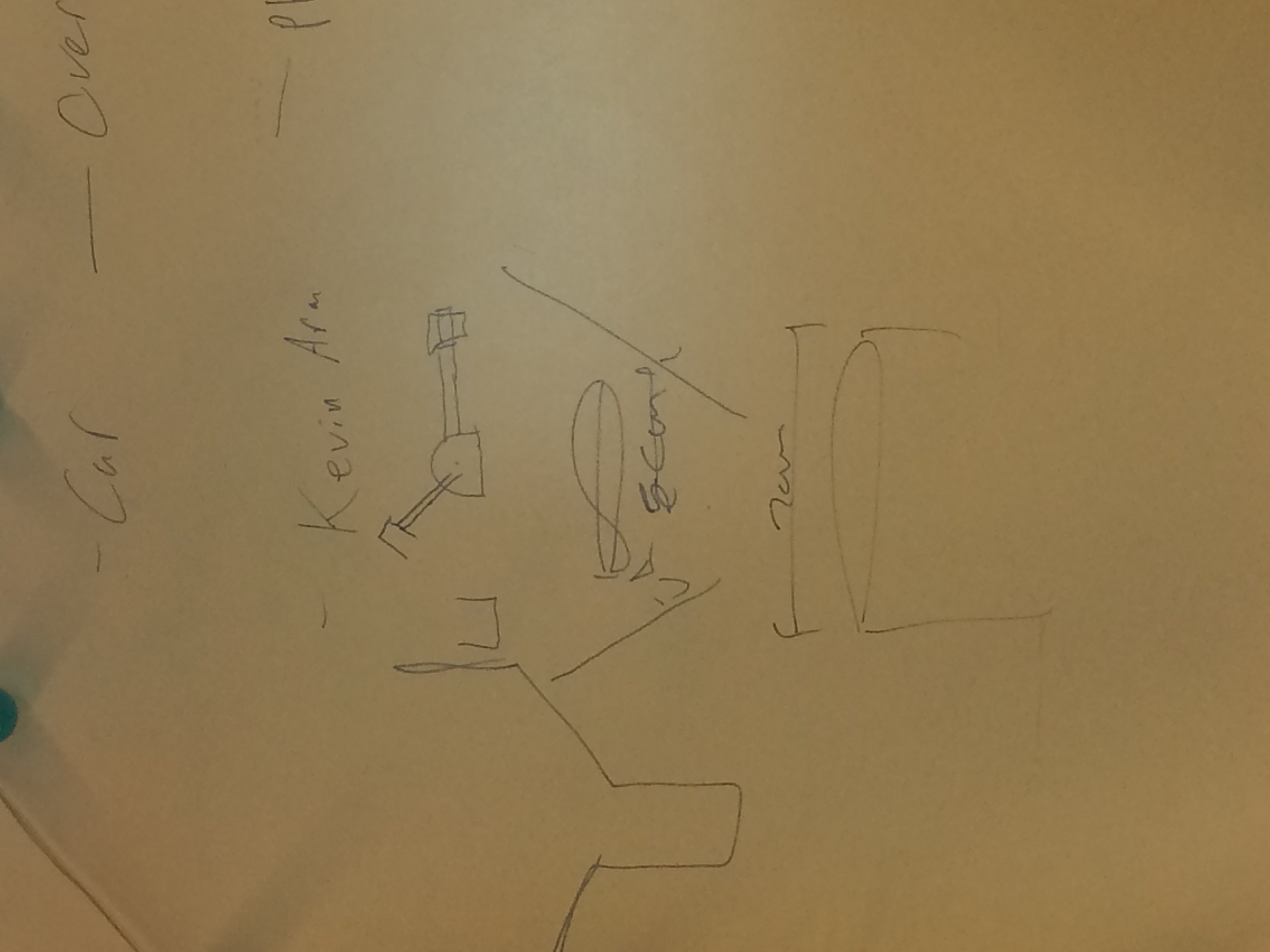 Today Kirk Ian and I worked on proof of concepts for the kevin arm. We basically strengthened the parts and came up with either motorization of the arm or bungy's to get a quick release.